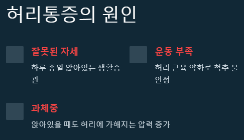 허리통증의 원인은 대부분 익숙한 생활습관에서 비롯돼요. 대표적인 세 가지를 짚어볼게요.