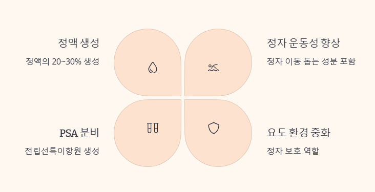 또한, 전립선액은 요도 내를 산성 환경에서 중화시켜 정자가 안전하게 이동할 수 있도록 돕는 역할도 해요.