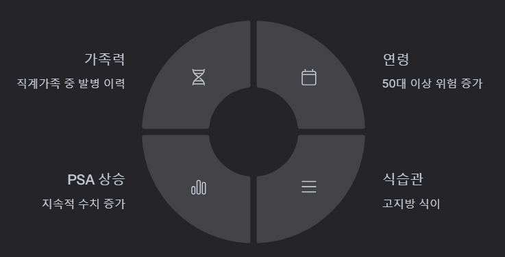 전립선암은 단순한 노화만으로 생기는 것이 아니라, 여러 가지 위험 요인이 함께 작용할 수 있어요.