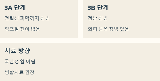 특히 3B의 경우, 방사선 + 호르몬 요법 병합이 기본 치료로 여겨지고 있어요.
