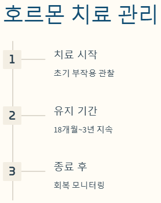 이런 증상은 대부분 시간, 운동, 약물요법 등으로 개선 가능하며, 호르몬 치료는 3년 이내 종료 후 회복 경과를 보는 경우가 많아요.
