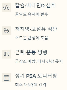 - 정기 PSA 모니터링: 최소 3~6개월 간격