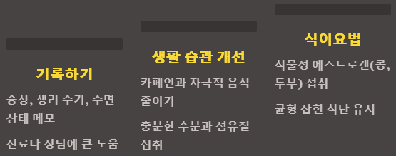 1단계는 기록하기예요. 증상이 나타나는 시기, 생리 주기, 수면 상태 등을 간단히 메모하는 것만으로도 나중에 진료나 상담에 큰 도움이 돼요.
