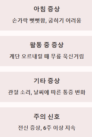 • 아침에 일어나면 손가락이 뻣뻣하고 굽히기 어렵다