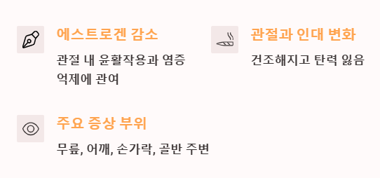 👉 호르몬 변화로 인한 관절 기능 저하는 검사에 잘 안 잡히는 경우도 있어요. 증상이 계속된다면 관절 전문 클리닉을 추천해요.