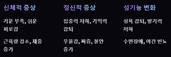 👉 성욕 감퇴가 주요 신호일 수 있지만, 신체·정신 증상과 함께 판단해야 해요.