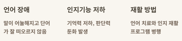 이럴 때는 언어 치료와 인지 재활 프로그램을 함께 진행하면 뇌 기능 회복에 도움이 됩니다.