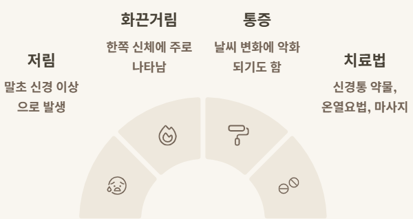 저림, 화끈거림, 통증 등의 증상은 뇌 손상 부위와 연결된 말초 신경에 이상이 생겼기 때문이에요. 특히 한쪽만 지속적으로 저리거나, 날씨 변화에 따라 통증이 심해지는 경우도 많아요.