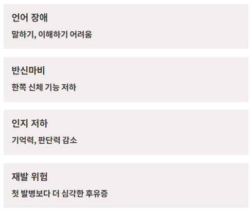 뇌경색은 뇌세포가 손상되는 만큼 회복에도 시간이 오래 걸리고, 언어 장애, 반신마비, 인지 저하 같은 다양한 후유증을 남기기도 해요.
