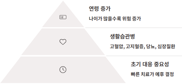 👉 나이가 들수록 혈관이 약해지고, 고혈압·고지혈증 같은 만성질환의 누적이 많아지기 때문이에요.