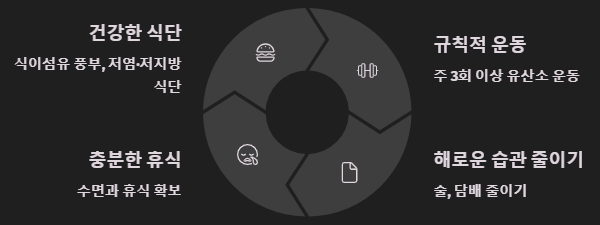 • 고혈압, 당뇨, 고지혈증, 비만 등 위험요소를 적극 관리하는 것이 중요