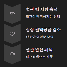 • 동맥경화는 서서히 진행되기 때문에 초기에 증상을 알아차리기 어렵다는 점이 무섭죠.