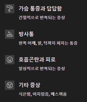 • 왼쪽 어깨나 팔, 턱까지 방사되는 통증이 있을 때
