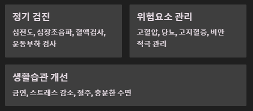 심근경색은 미리 막을 수 있는 병입니다. 정기적인 검사와 위험요소 관리가 가장 효과적이에요.
