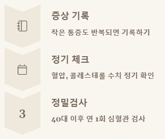 특히 40대 이후라면 1년에 한 번은 심혈관 정밀검사를 권장해요.