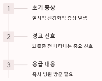 이런 증상은 일시적일 수 있지만, 일과성허혈발작(TIA)이라 부르며 실제로 뇌졸중이 발생하기 전 나타나는 중요한 경고 신호예요.