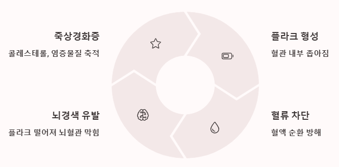 - 플라크가 떨어져 나가면서 뇌혈관을 막아 뇌경색을 유발할 수도 있어요