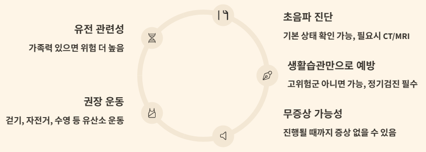 - 증상이 없다 하더라도, 위험군이라면 조기 검진으로 상태를 확인하는 것이 최선입니다.