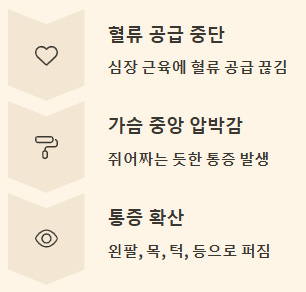 - 가슴 중앙이 무겁고 쥐어짜는 느낌이 5분 이상 지속될 때
