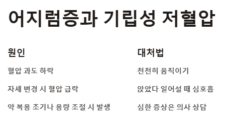 1. 어지럼증 및 기립성 저혈압