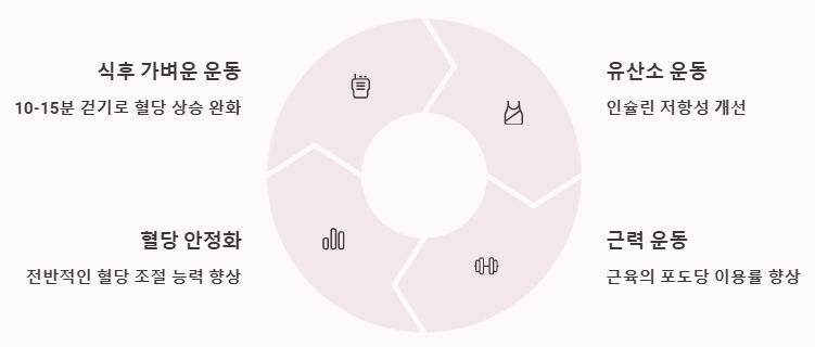 👉 네, 매우 도움이 됩니다. 식사 후 10~15분 정도 가볍게 걷는 것만으로도 식후 혈당 상승을 완화할 수 있습니다. 꾸준한 유산소 운동과 근력 운동은 인슐린 저항성을 개선하고 근육의 포도당 이용률을 높여 혈당 조절 능력을 전반적으로 향상시킵니다.