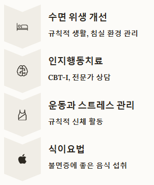 👉 네, 물론입니다. 불면증 치료의 핵심은 약물 외 비약물 요법입니다. 수면 위생 개선(규칙적인 생활, 침실 환경 관리 등), 인지행동치료(CBT-I), 스트레스 관리, 운동, 그리고 불면증에 좋은 음식 섭취 등 다양한 방법들이 약물 치료만큼, 또는 그 이상으로 중요합니다. 약은 일시적인 도움일 뿐, 생활 습관 개선이 근본적인 해결책이 될 수 있습니다.