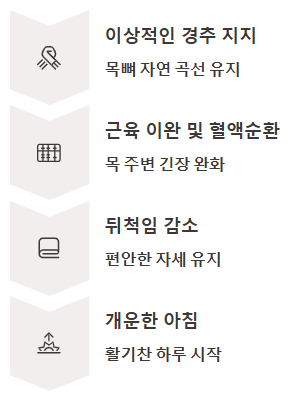 - 근육 이완 및 혈액순환 개선: 목 주변의 긴장을 완화시켜 혈액순환을 돕고, 편안한 상태에서 깊은 잠에 들 수 있도록 합니다.
