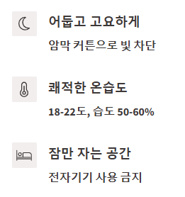 - 침실 온도: 18~22도가 숙면에 가장 이상적입니다. 약간 서늘하게 느껴지는 정도가 좋아요.