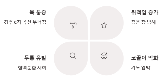 - 두통 및 피로감: 잠자는 동안 목 근육이 긴장하거나 혈액순환이 원활하지 않으면 아침에 일어났을 때 두통과 피로감을 느낄 수 있습니다.