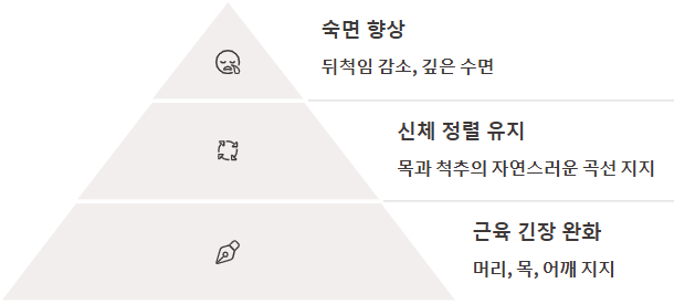 - 뒤척임 감소: 편안한 자세를 유지할 수 있어 불필요한 뒤척임이 줄어들고 숙면 시간이 늘어납니다.