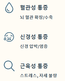 - 동반 증상 (메스꺼움, 빛/소리 공포증 등)