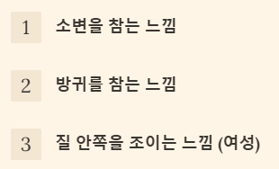 - 소변을 참는 느낌: 소변을 보다가 중간에 멈출 때 사용하는 근육이 바로 골반저근입니다.