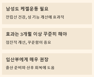 - 무리하지 않기: 처음부터 너무 오래 조이거나 많은 횟수를 하려 하지 마세요. 정확한 근육 사용이 중요합니다.
