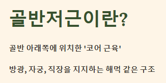 - 방귀를 참는 느낌: 항문을 위로 끌어올리듯이 조이는 근육이 골반저근입니다.
