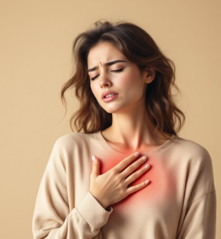 - 위치: 주로 가슴 중앙(명치 위, 흉골 뒤)에 나타납니다.