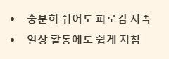 - 충분히 쉬어도 피로가 풀리지 않고, 일상적인 활동에도 쉽게 지친다면 의심해 볼 필요가 있습니다.
