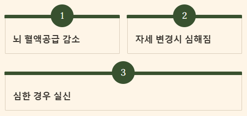 - 특히 갑자기 일어서거나 자세를 바꿀 때 어지럼증이 심해진다면 주의해야 합니다.