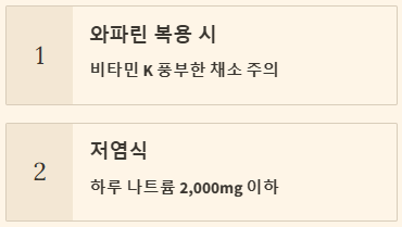 👉 와파린(Warfarin)을 복용 중이라면 비타민 K가 풍부한 채소(녹색 잎채소, 브로콜리 등) 섭취에 주의해야 합니다. 비타민 K는 와파린의 약효에 영향을 줄 수 있으므로, 갑작스러운 섭취량 변화 없이 일정한 양을 꾸준히 섭취하거나, 의사와 상담하여 복용량을 조절해야 합니다. 최근에는 비타민 K의 영향을 덜 받는 새로운 항응고제(NOACs)도 많이 사용됩니다.
