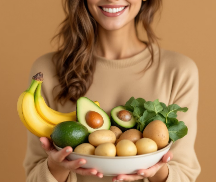 - 음식: 바나나, 감자, 고구마, 시금치, 토마토, 아보카도, 콩류 등에 풍부합니다. (단, 신장 질환이 있는 경우 칼륨 섭취는 의사와 상담 후 조절해야 합니다.)
