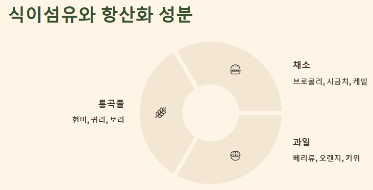 식이섬유가 풍부한 통곡물 및 채소🥦