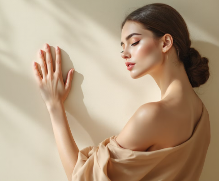 - 벽을 보고 서서 한 팔을 어깨 높이로 들어 손바닥을 벽에 댑니다.