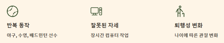주로 팔을 머리 위로 들어 올리는 동작을 많이 하는 사람(예: 야구, 배드민턴, 수영 선수, 미용사, 페인트공 등)에게 흔하게 나타나지만, 잘못된 자세나 어깨 관절의 퇴행성 변화로 인해 누구에게나 발생할 수 있습니다.