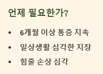 - 주사 치료: 통증이 심한 경우 염증 완화를 위해 스테로이드 주사나 프롤로 치료 등을 고려할 수 있습니다.