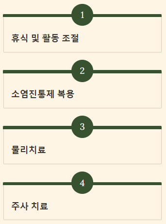 - 약물 치료: 소염진통제를 복용하여 염증과 통증을 조절합니다.