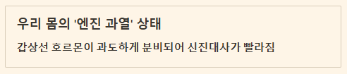 - 피로감: 몸의 에너지가 과도하게 소모되어 쉽게 지치고 피로감을 느낍니다.