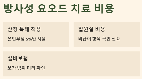👉 네, 됩니다. 방사성 요오드 치료는 갑상선암의 필수적인 치료 과정이므로, 산정 특례 기간 내에 있다면 본인 부담금 5%만 내면 됩니다. 입원실 비용 등 비급여 항목은 실비보험으로 보장받을 수 있는지 확인해 보세요.
