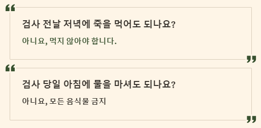 Q. 검사 전날 저녁에 죽을 먹어도 되나요?