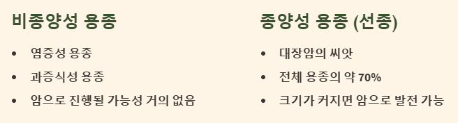 대장 용종은 크게 '비종양성 용종'과 '종양성 용종'으로 나눌 수 있습니다. 이 둘을 구분하는 것이 매우 중요합니다.