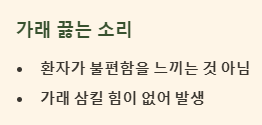 👉 대부분의 경우 환자가 고통스러워하는 것은 아닙니다. 삼키는 힘이 약해져서 기도에 분비물이 고이는 소리이므로, 옆에서 보기에 괴로워 보일지라도 환자 본인은 의식이 없어 소리를 인지하지 못하는 경우가 많습니다. 환자의 자세를 옆으로 눕혀주는 것이 도움이 될 수 있습니다.