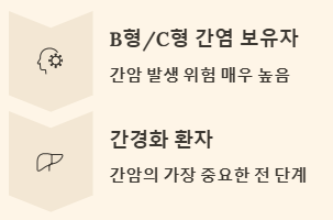 만성 B형 간염 바이러스 보유자나 C형 간염 항체 양성자는 간암 발생 위험이 매우 높으므로 반드시 정기적인 관찰이 필요합니다.